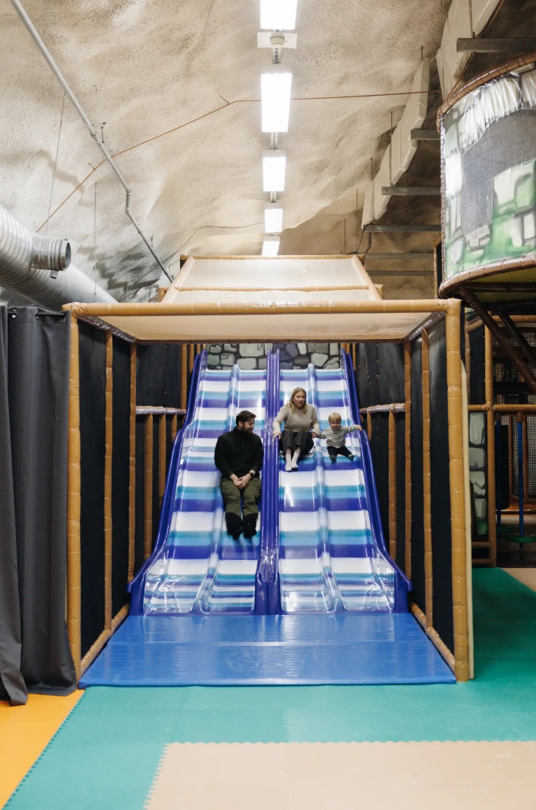Дитячий майданчик займає один з багатьох притулків цивільної оборони, виритих глибоко в корінних породах під Гельсінкі, Фінляндія