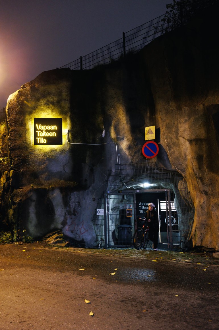 Vapaan Taiteen Tila, простір для подій, закопаний у печеру біля Університету мистецтв Гельсінкі, приймає музичні вистави, техно-вечірки, театральні постановки та художні виставки