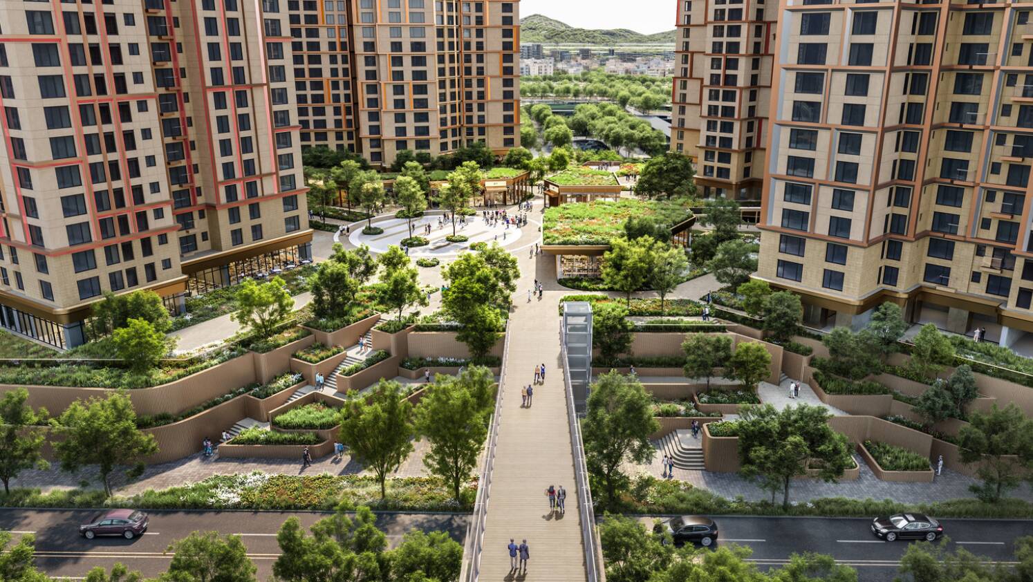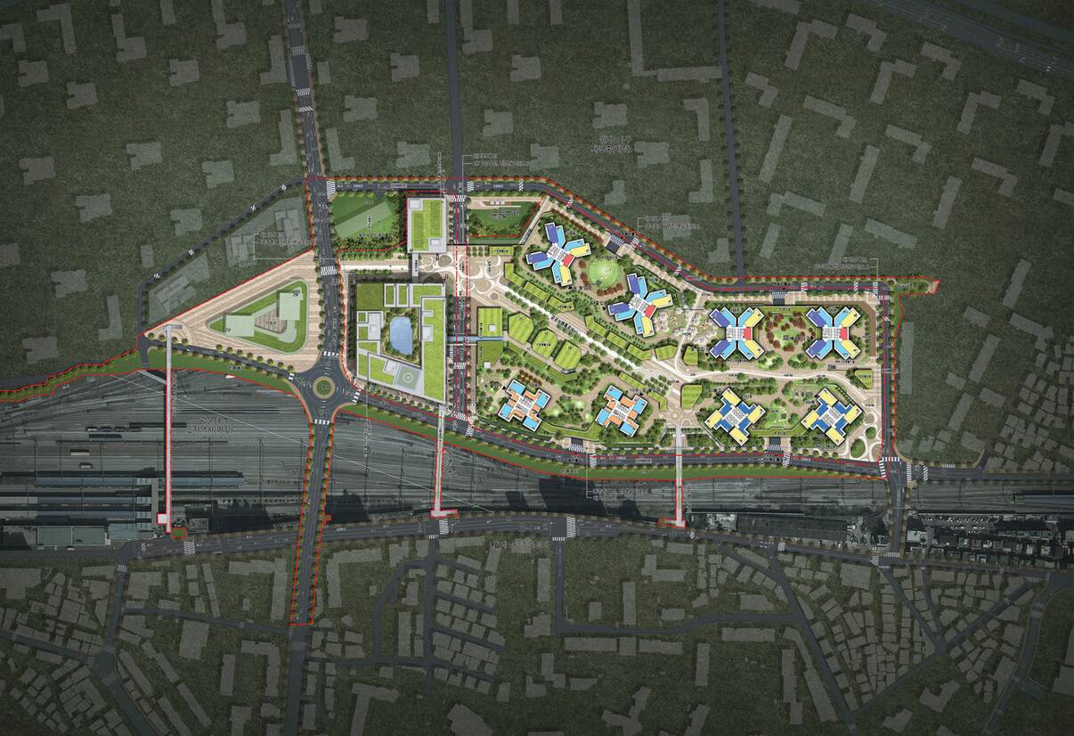 Це буде невелике місто-мікрорайон, де всі необхідні послуги, житло, магазини, офіси, готель, спортивні майданчики, дитячі садки, будинки для літніх людей та медичний центр, знаходитимуться в межах десяти хвилин пішки. Більше 30% території займатимуть парки, садки на дахах, водні сади та лісова алея.