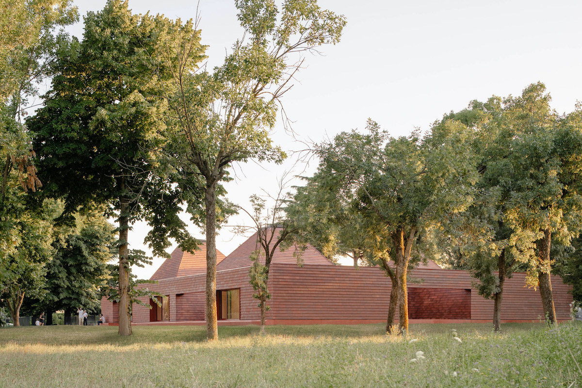 Будівля дитсадка Kinder Rain, оздоблена теракотовою плиткою, включає три таких «хатинки-казоне».