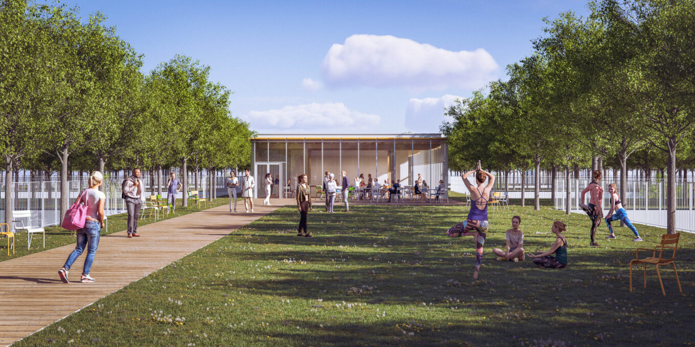 На території комплексу з’явиться міський ліс із понад тисячею дерев, а на даху облаштують сад площею близько 1,3 гектара. Зелені внутрішні дворики та відкриті простори мають створити спокійну атмосферу для пацієнтів і персоналу, а також допомогти зменшити енергоспоживання будівлі завдяки природному затіненню й покращеній вентиляції.