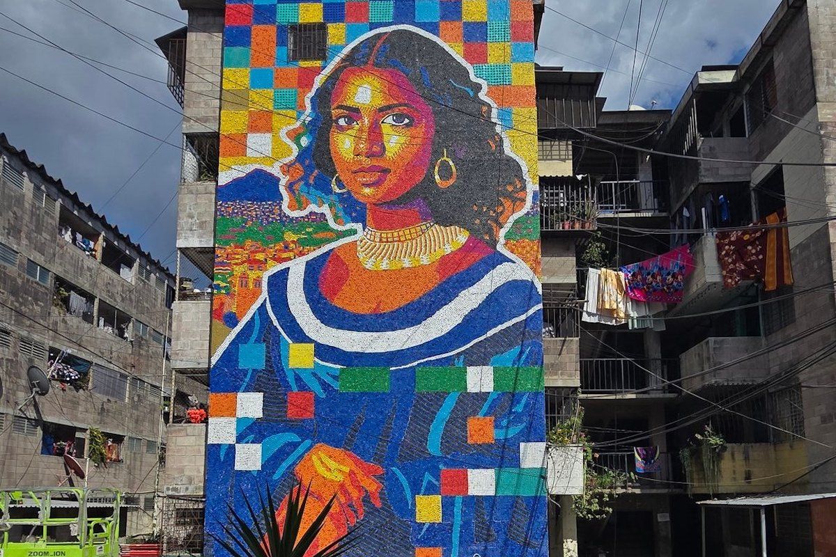 Це не перша робота з пластикових кришечок 30-річного венесуельського художника. Раніше Оліварес створював подібні мурали у Каракасі (столиці Венесуели), У Мексиці, Панамі, Італії, Франції та Саудівській Аравії.