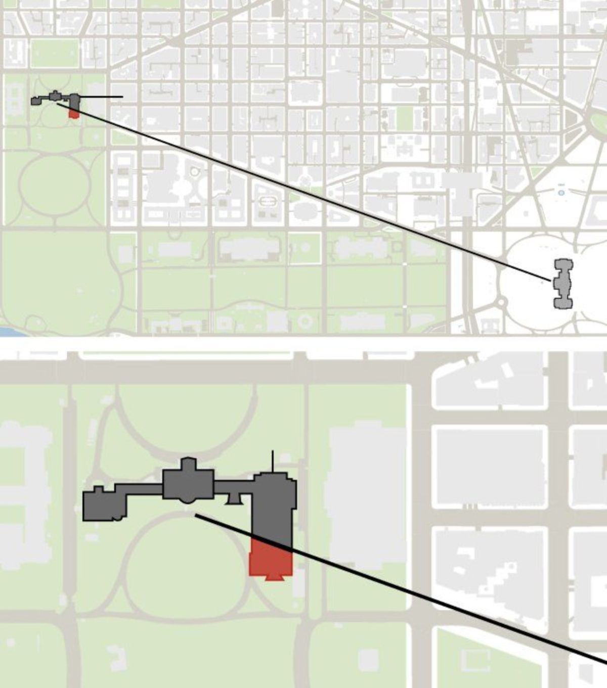 Нове крило порушить задум планувальника П’єра-Шарля л’Анфана, який наприкінці XVIII століття спроєктував діагональ Пенсільванії-авеню між Білим домом і Капітолієм. Зала Трампа переб’є цю візуальну лінію.