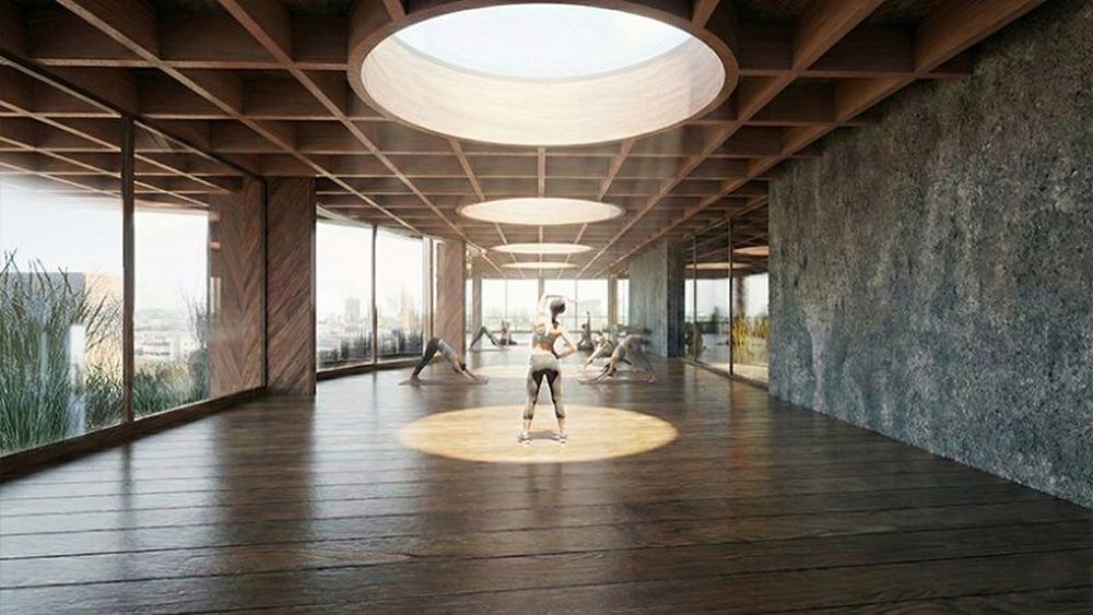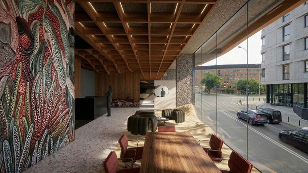 На першому рівні планують розмістити коворкінг та ресторан. Інтер’єри відсилають до піщаних берегів Вісли, а графічні елементи натхнені місцевою флорою та символом Варшави - русалкою.