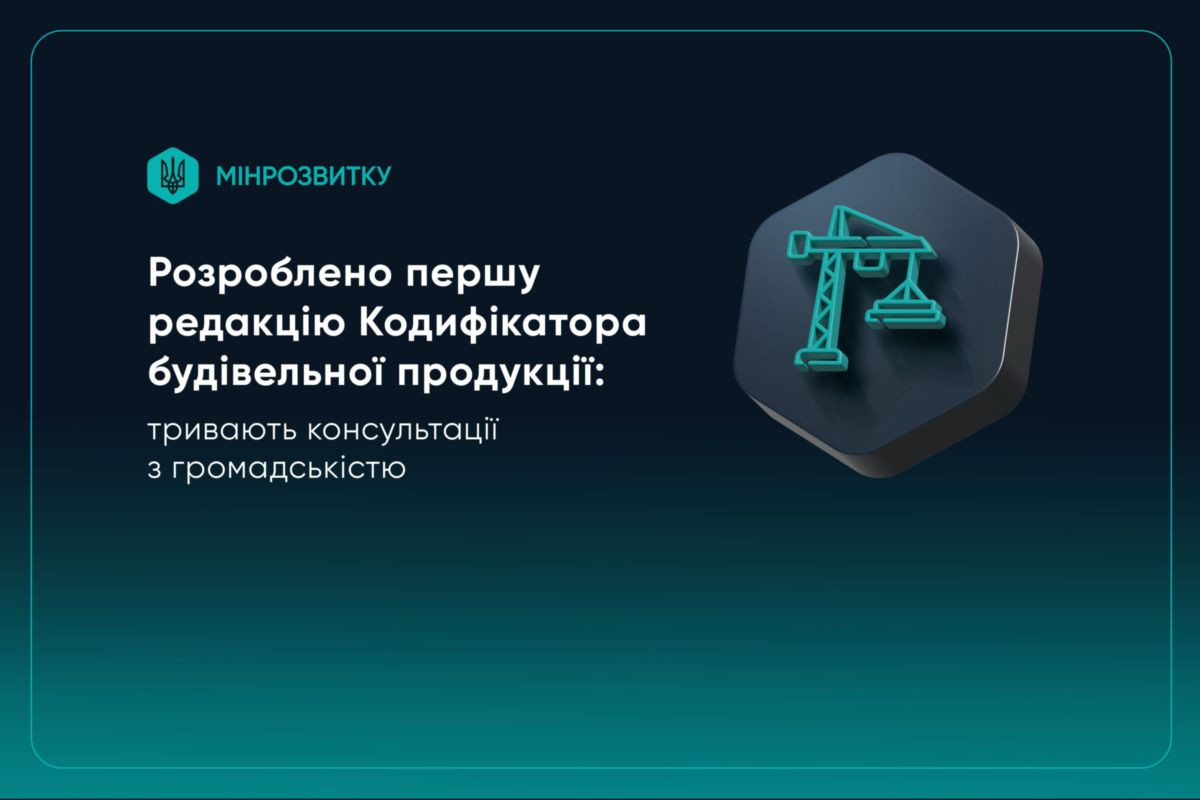 Мінрозвитку представило першу редакцію Кодифікатора будівельної продукції – документа, який впорядковує класифікацію основних матеріалів, виробів і конструкцій, що використовуються у будівництві.