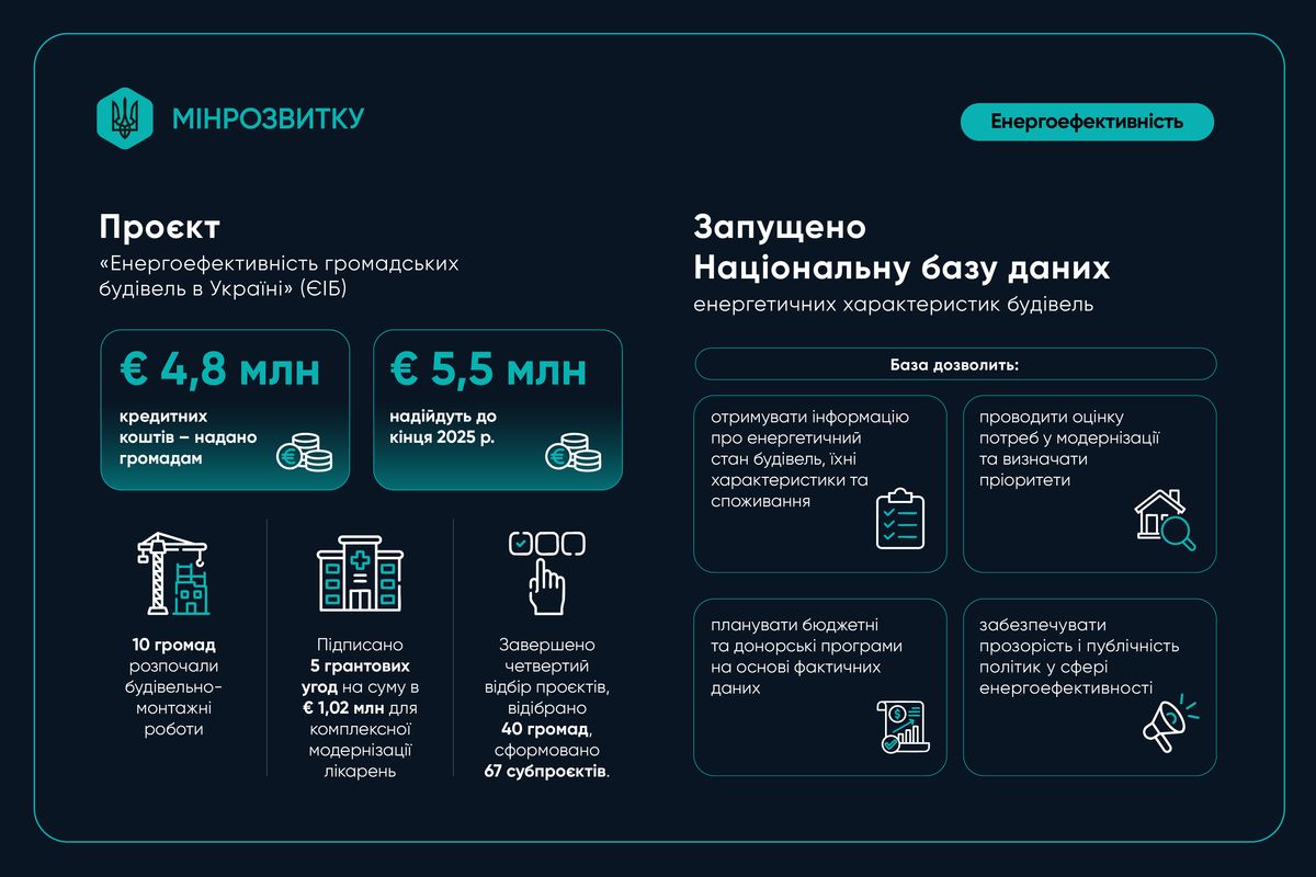 У 2025 році продовжено реалізацію проєкту «Енергоефективність громадських будівель в Україні», що впроваджується спільно з Європейським інвестиційним банком (ЄІБ).