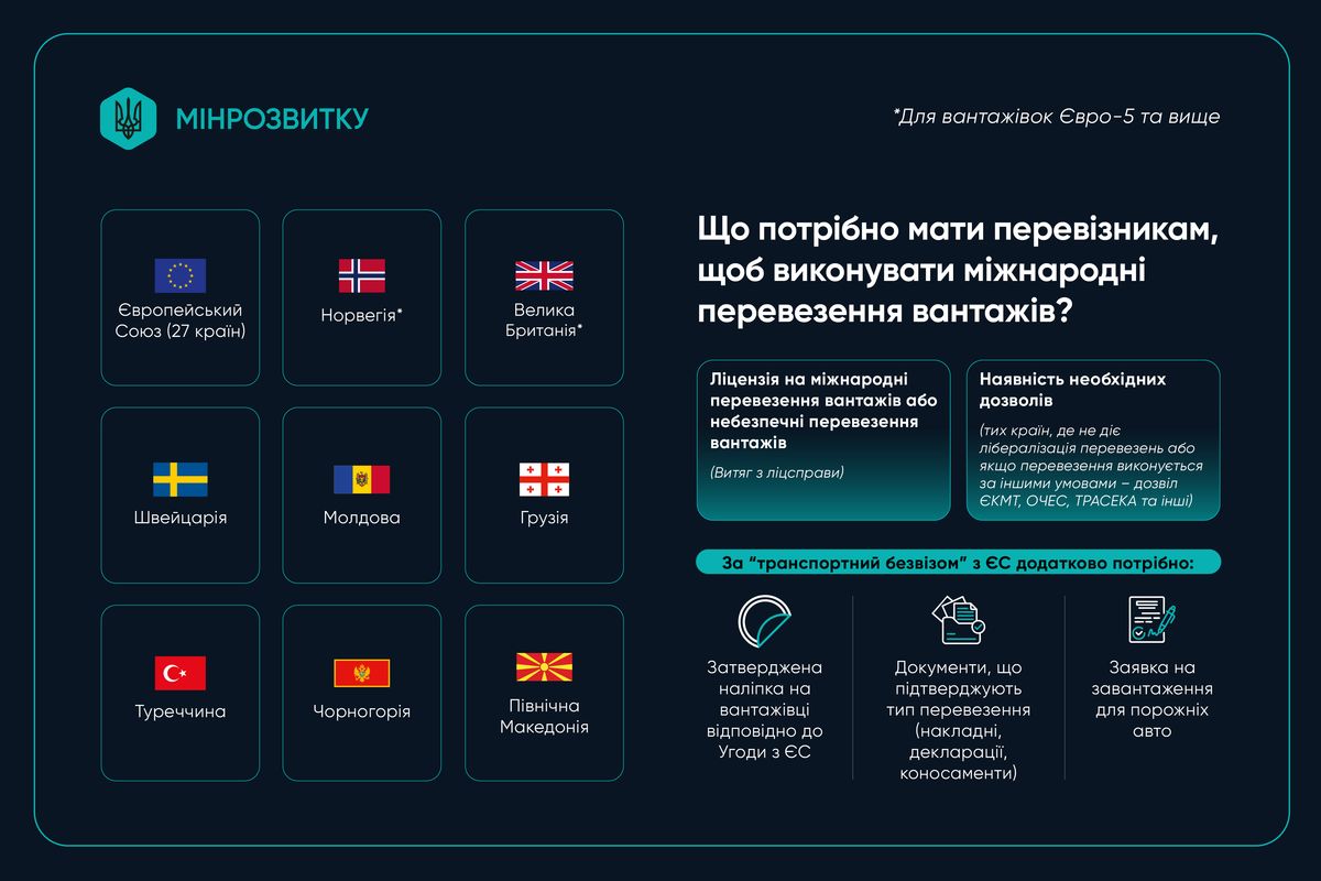 У межах дії “транспортного безвізу” з ЄС перевізнику додатково необхідно мати: