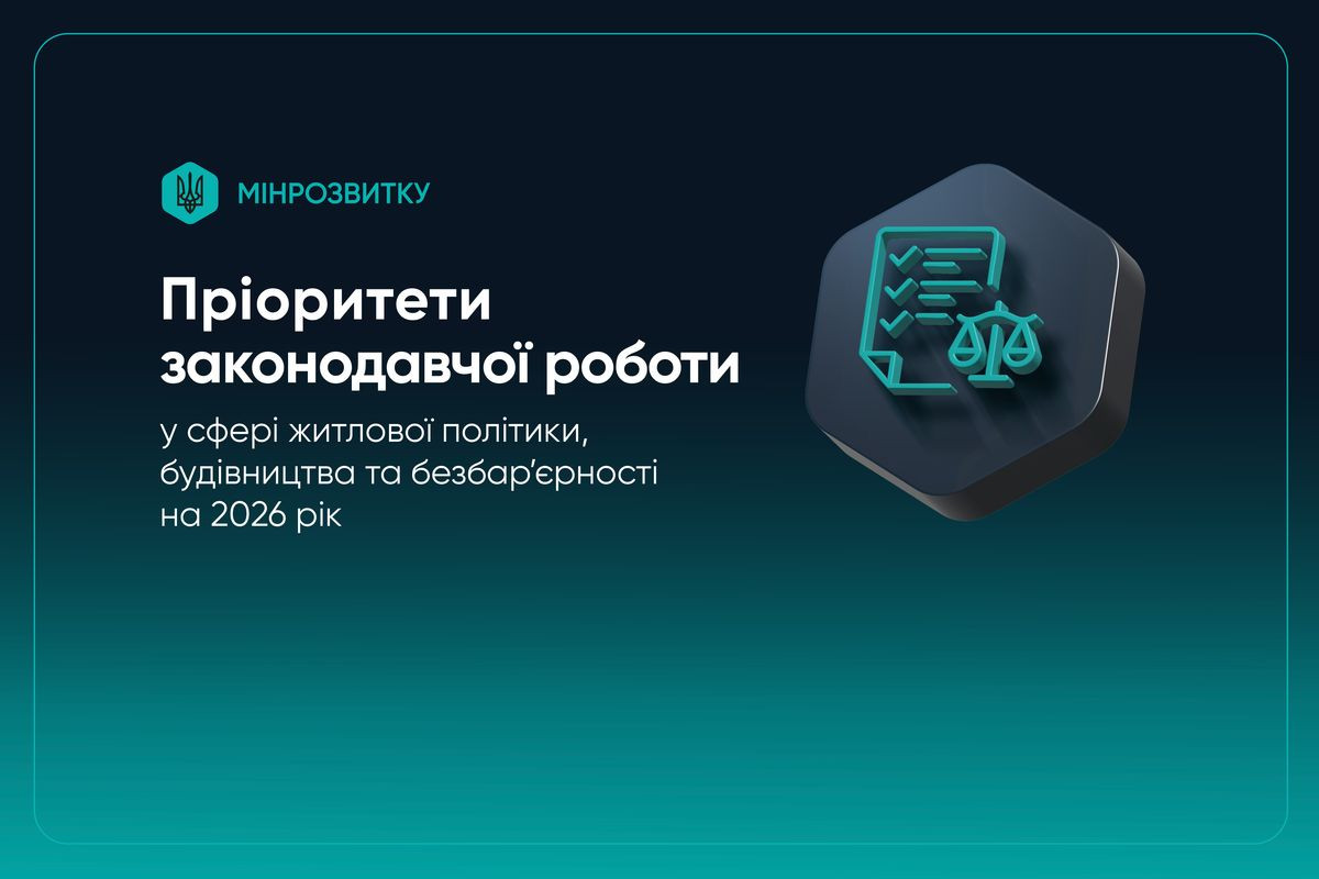Міністерство розвитку громад та територій України сформувало перелік пріоритетних законодавчих ініціатив у сфері житлової політики, будівництва і впровадження безбарʼєрності на 2026 рік.
