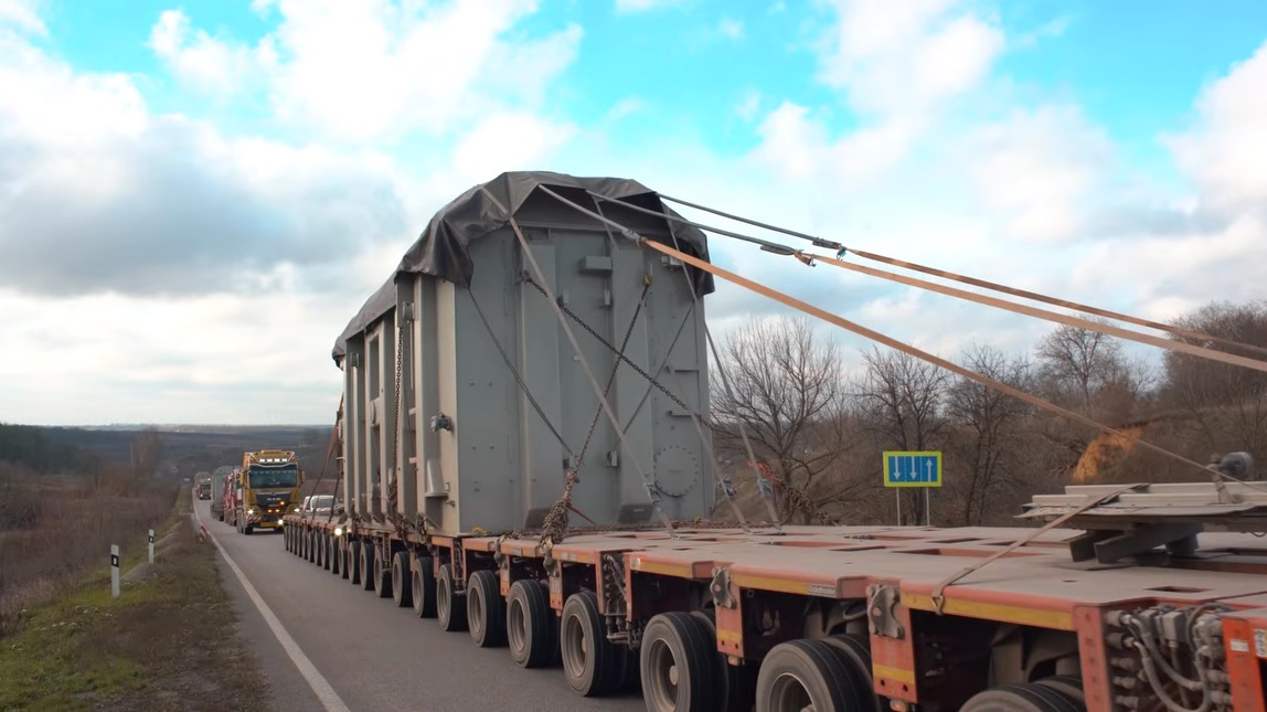 Кожен автотрансформатор важить близько 200 тонн. Через значні габарити транспортування вимагало спеціальної логістики та ретельного планування маршрутів. В Укренерго показали процес доставки обладнання до місць встановлення.