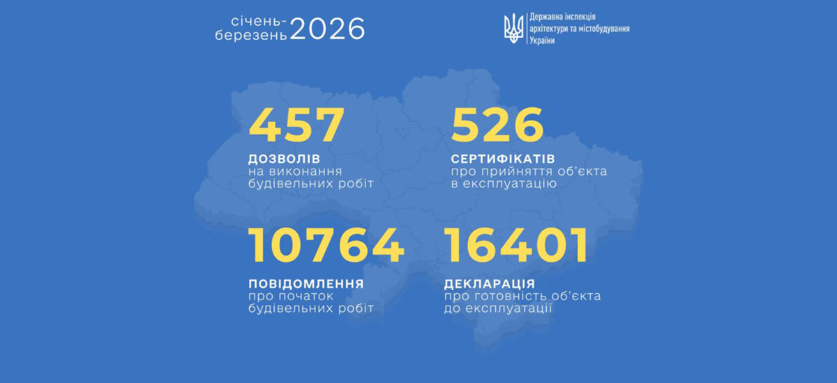 За перші три місяці 2026 року видано 457 дозволів на будівництво та прийнято 526 об’єктів в експлуатацію. Також опрацьовано понад 27 тисяч повідомлень і декларацій щодо початку та завершення робіт