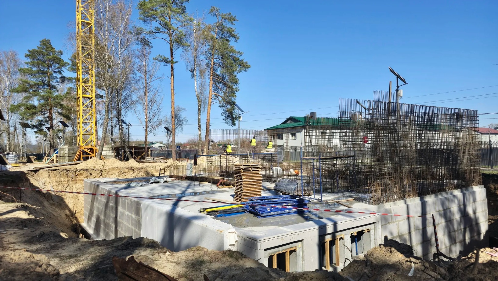 На цьому об’єкті вже триває будівництво підземного рівня, який виконуватиме функцію укриття. Виконуються роботи з монтажу опалубки, в’язки арматури для фундаменту, а також частково проведено благоустрій території та встановлено елементи бювету.