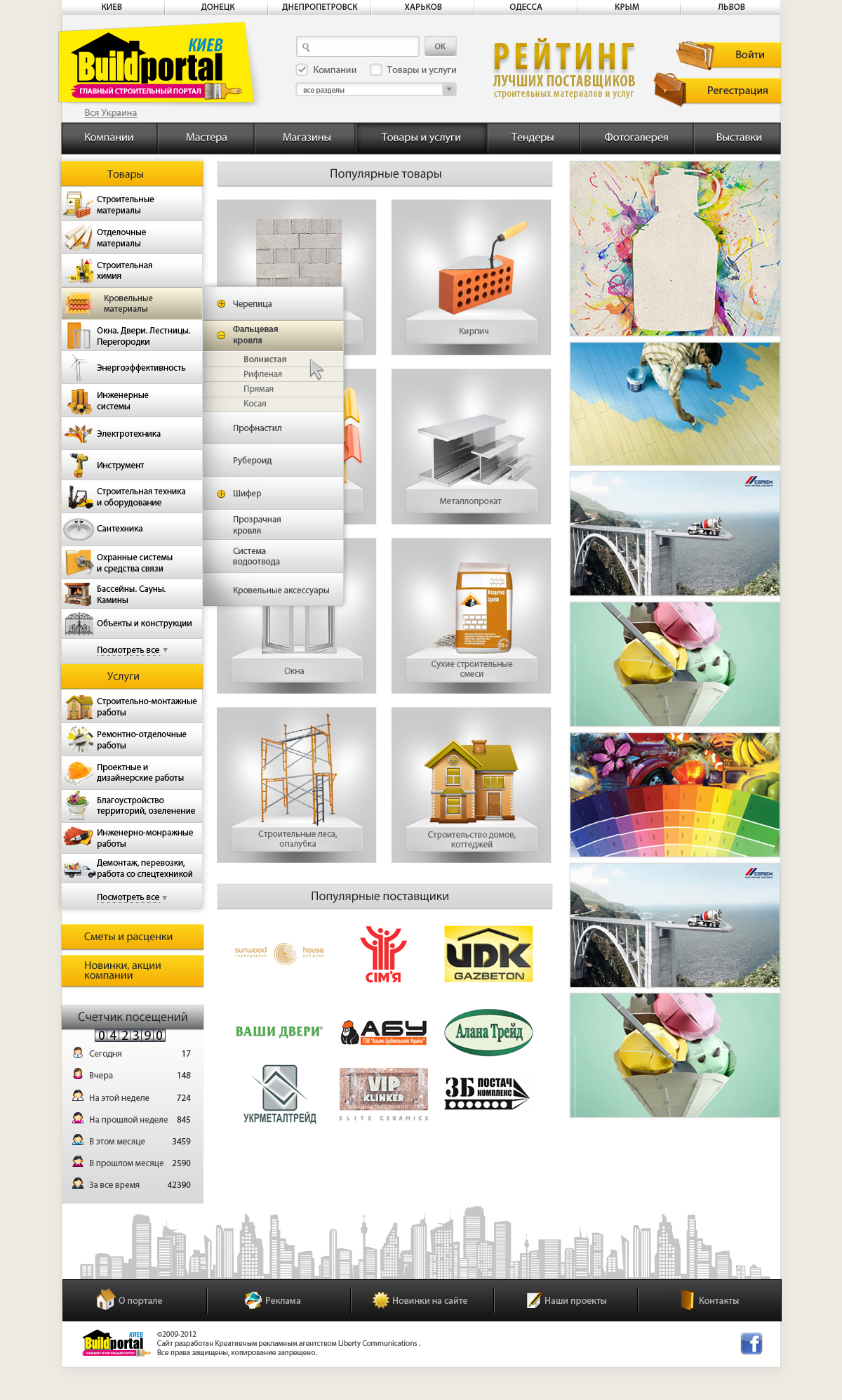 Ура! Работа команды на протяжении 2 ух лет увенчалась успехом! Мы целый год тщательно продумывали, каким должен быть Главный строительный портал страны, и вот уже как год воплощаем мечты в реальность. Сегодня мы представили на Ваш суд проект, который на первый взгляд очень простой, не имеет ничего лишнего,  но таит в себе невероятное колличество нужной информации для специалистов и обычных потребителей. Здесь каждый человек, который связан со строительствои или ремонтом найдет для себя всю необходимую информацию. Обязательно-мы очень точно  следим за свежестью информации о компаниях, здесь Вы найдете всех поставщиков и производителей строительных материалов и услуг, прорабов и мастеров, все строительные магазины, все строительные выставки, а также фотогалерею ремонтов,дизайнов, обьектов. Мы работаем над созданием масштабной функции-конструктор сайтов, на нашем портале очень скоро Вы сможете увеличить свои продажи, создав свой персональный сайт, разместив все товары и услуги. А также добавить тендер на закупку материалов или ремонт, для получения самых выгодных предложений. Подписанные на тендеры компании будут получать готовые заказы. И самое важное- РЕЙТИНГ. Все компании, мастера,магазины размещены по рейтингу. Мы представили Всех, кто есть на рынке, и разместили их по уровням рейтинга, для Вашего удобства подбора поставщиков.