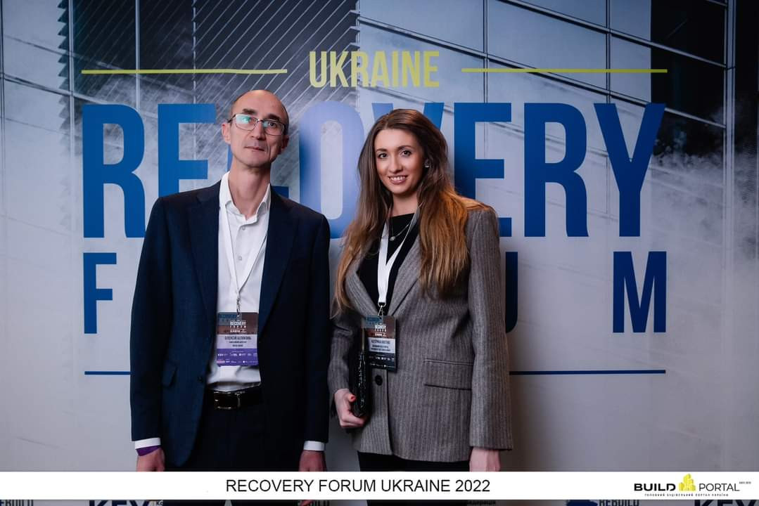 Алексей Белоконь, коммерческий директор Royal House и Екатерина Никитина, основатель Build Portal во время конференции Recovery Forum Ukraine 2022