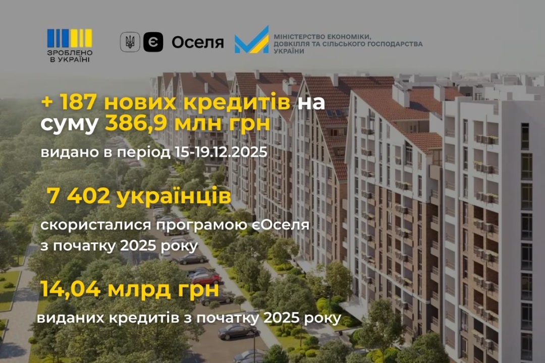 Із початку 2025 року понад 7 400 українців скористалися програмою «єОселя», загальна сума наданих пільгових кредитів на житло сягнула 14,04 млрд грн.