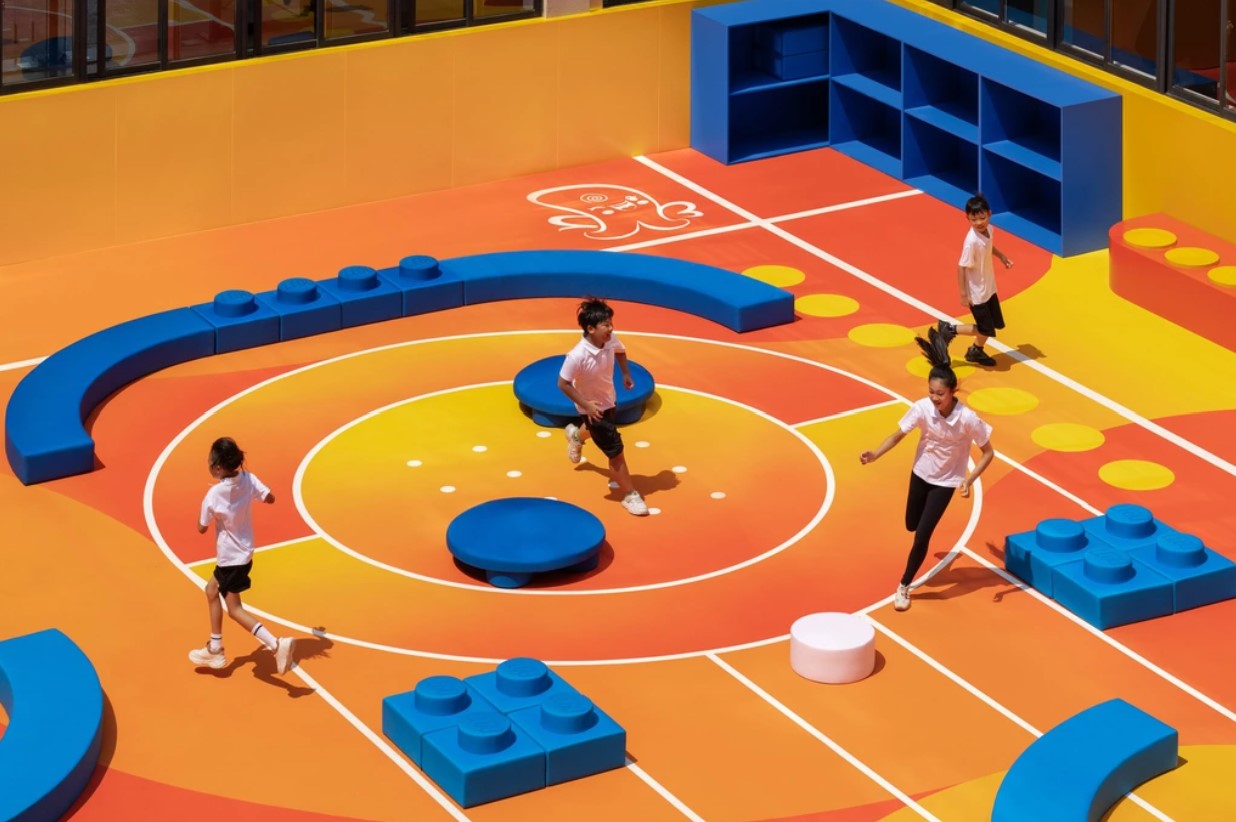 Компанії Lego i Nike у співпраці з дизайнерською студією OLA Shanghai створили різноколірний модульний спортивний майданчик для початкової школи у китайському Шанхаї, пише Dezeen.