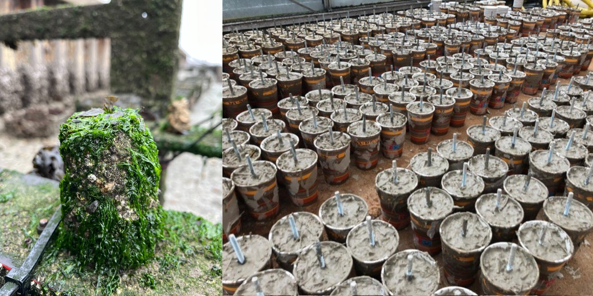Xiriton - новий матеріал на основі природних компонентів - показав здатність відновлювати морське життя: після року у воді блоки покрилися водоростями, устрицями та мідіями, створюючи нові рифові екосистеми