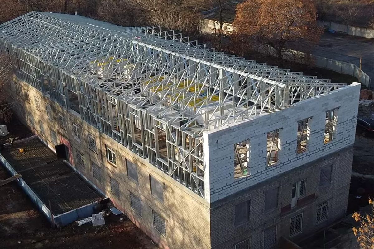 Спеціалісти РЕДІКОН запропонували надбудову повноцінного поверху з використанням легких сталевих тонкостінних конструкцій (ЛСТК). Ця технологія стала оптимальним рішенням з кількох причин:
